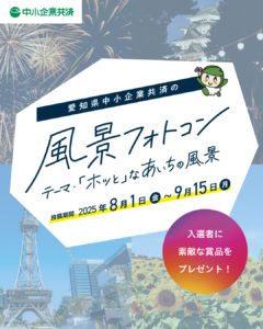 お知らせ 2025/08/01 インスタグラムフォトコンテスト開催のご案内 インスタグラムフォトコンテストを令和7年8月1日より開催中です。 2回目となる今回のテーマは「ホッとなあいちの風景」です。 スマホで撮影した、あいちの風景を気軽に投稿してみませんか。 ◆各 賞 ・最優秀賞 ・ホッと心安らぐ賞 ・HOT SUMMER賞 ・HOT SPOT賞 ・ユニーク賞 ◆開催期間 令和7年8月1日(金)~令和7年9月15日(月) 応募方法など詳細は、当組合公式インスタグラムの開催案内投稿をご覧ください。 インスタグラムはこちら 一覧へ戻る